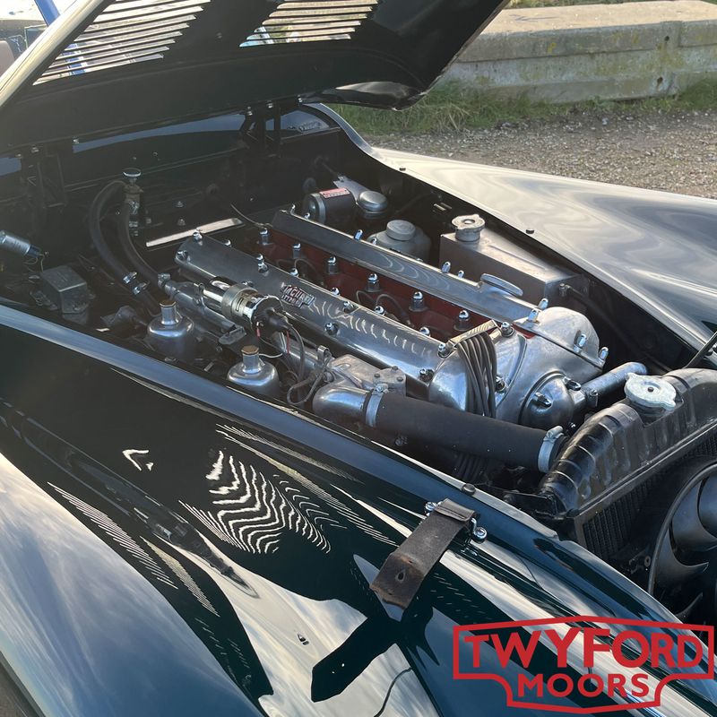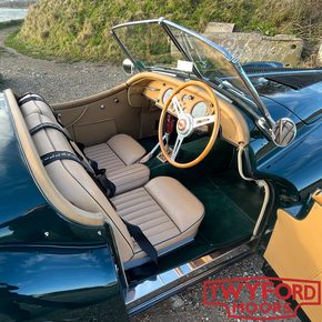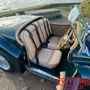 Finished in classic British Racing Green with a Biscuit and Green two-tone interior and matching green wet weather equipment, the car presents beautifully. The overall appearance is purposeful and evocative, with period motorsport cues including a louvred bonnet, bonnet strap and Le Mans-style fuel filler. As expected from one of our restorations, it remains a very striking car even two decades on.