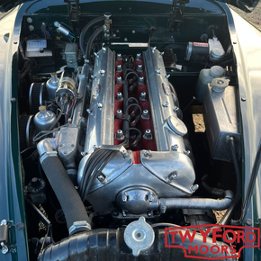 In 2004–2005 the car was treated to a comprehensive, nut-and-bolt restoration here at Twyford Moors. Built with fast road driving very much in mind, the XK was upgraded to a high and carefully considered specification. The engine was rebuilt to fast road specification and paired with a T5 five-speed gearbox. A pedal box was installed to improve driving position and legroom, along with a hydraulic clutch and dual-circuit braking system. Front disc brakes were fitted, and the suspension was completely rebuilt using polyurethane bushes, an uprated anti-roll bar and adjustable dampers. Cooling was improved with the addition of an electric fan and aluminium expansion tank, while further upgrades include an alternator, electronic ignition and a solid-state fuel pump.