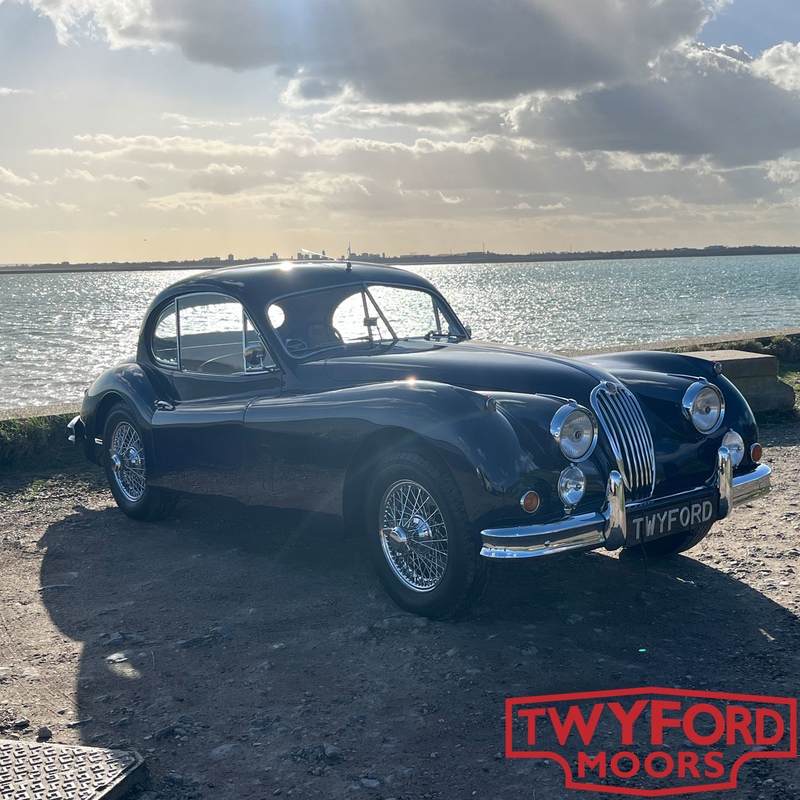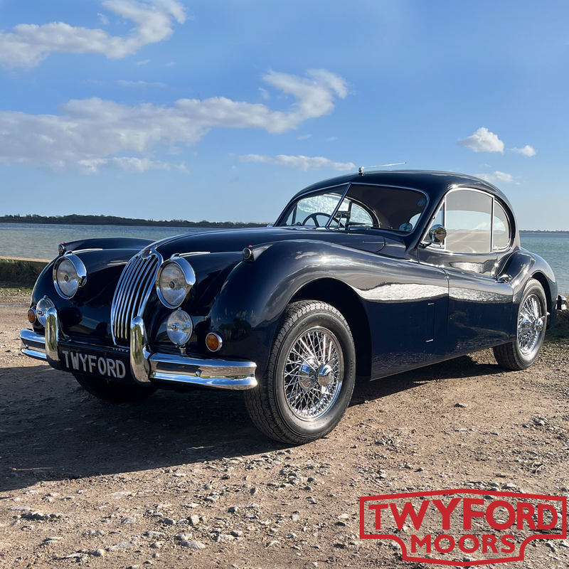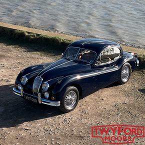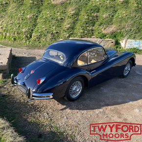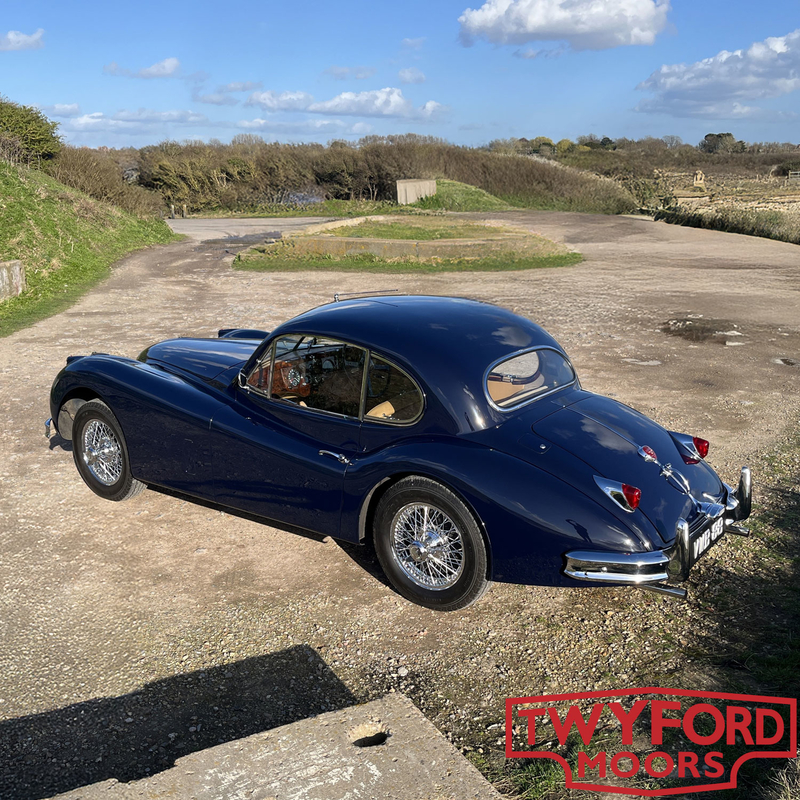 This Jaguar XK140 FHC is an original UK right-hand-drive car. It was originally dispatched in August 1955 and sold by Ernest W. Hatfield Ltd of Sheffield. The first owner was J. W. Beevers, also of Sheffield, and the car still wears its original number plate, VWB 88.